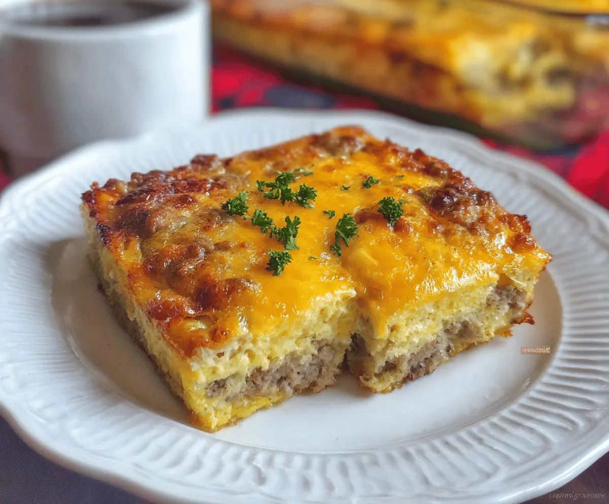 Delicious 4 Ingredient Sausage Breakfast Casserole ready to serve