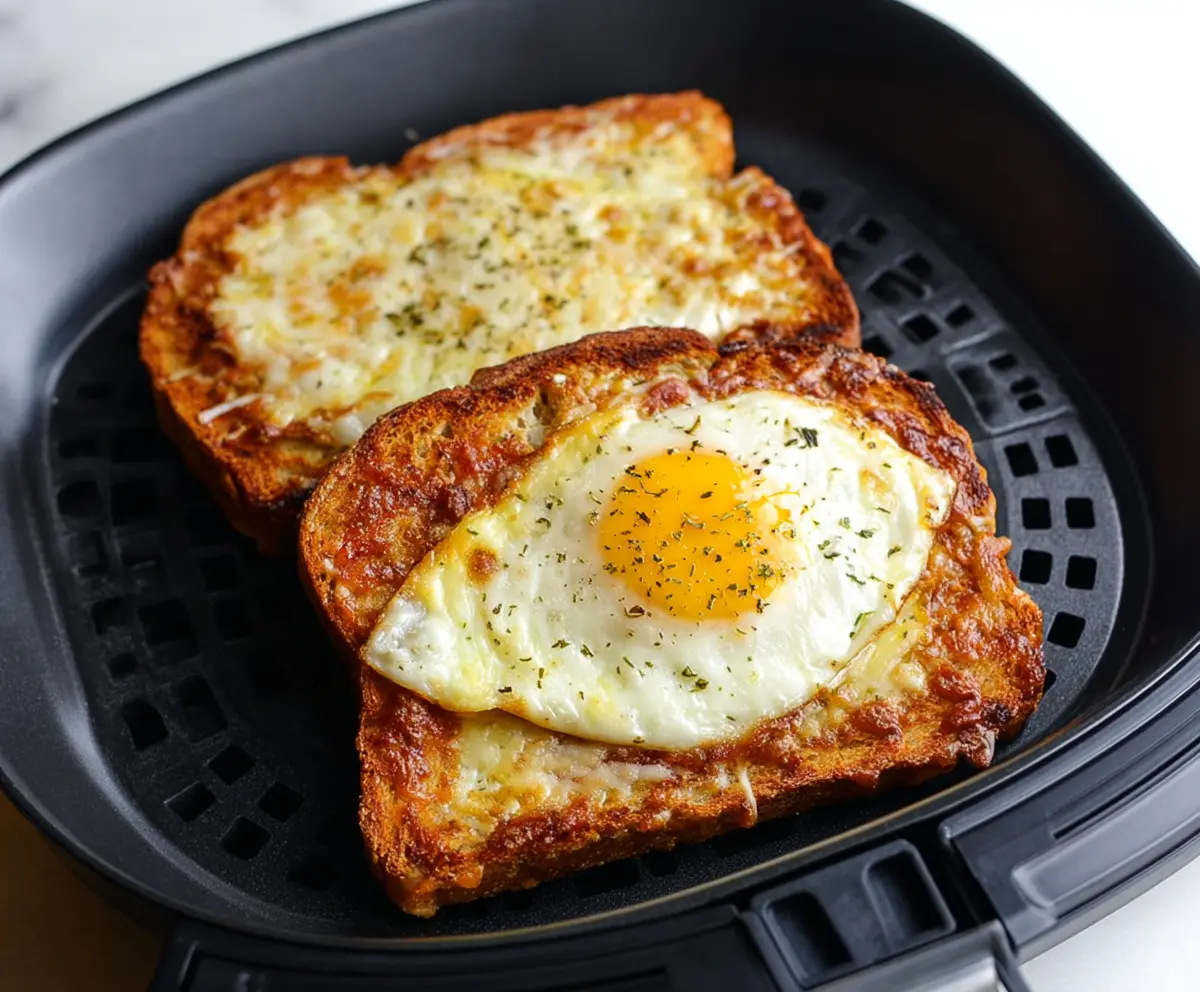 This Air Fryer Egg and Cheese Toast is a quick and tasty breakfast! Just layer eggs and cheese on crispy toast, cook it in the air fryer, and enjoy a warm, gooey treat.