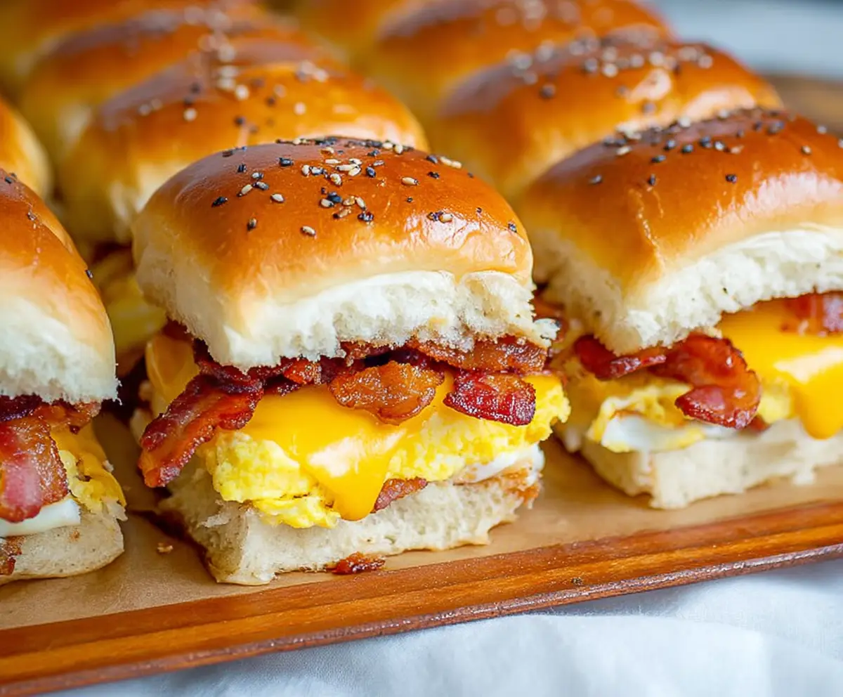 These Bacon Egg and Cheese Breakfast Sliders are the perfect morning treat! Soft rolls are filled with crispy bacon, scrambled eggs, and gooey cheese, making them super tasty.