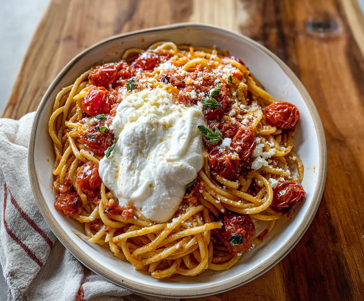 This Burst Tomato Burrata Pasta is a joy! It features fresh, sweet tomatoes that burst with flavor, creamy burrata cheese, and al dente pasta, making each bite delightful and satisfying.