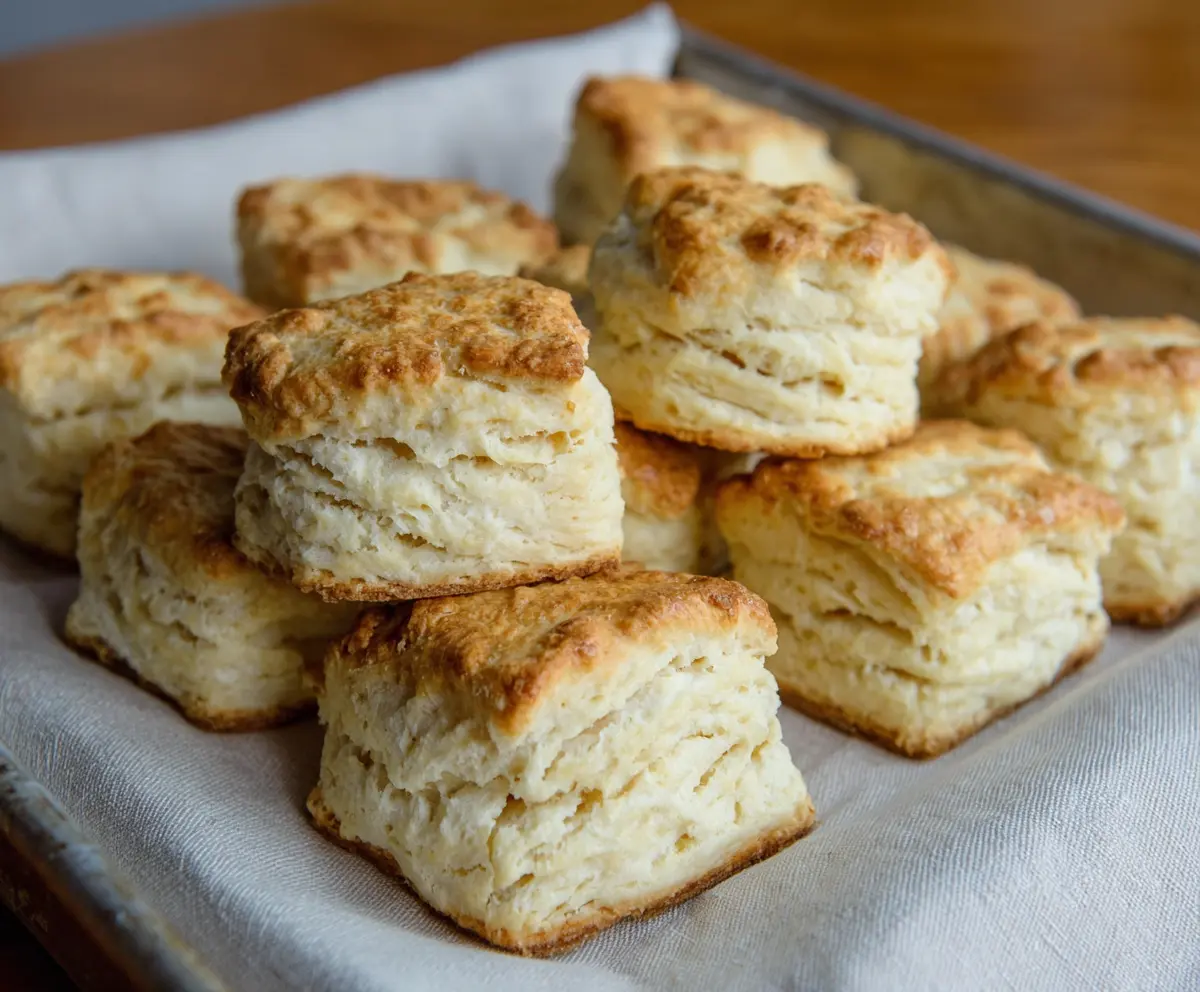 Golden buttermilk sourdough freezer biscuits fresh from the oven, perfect for breakfast or snacks.