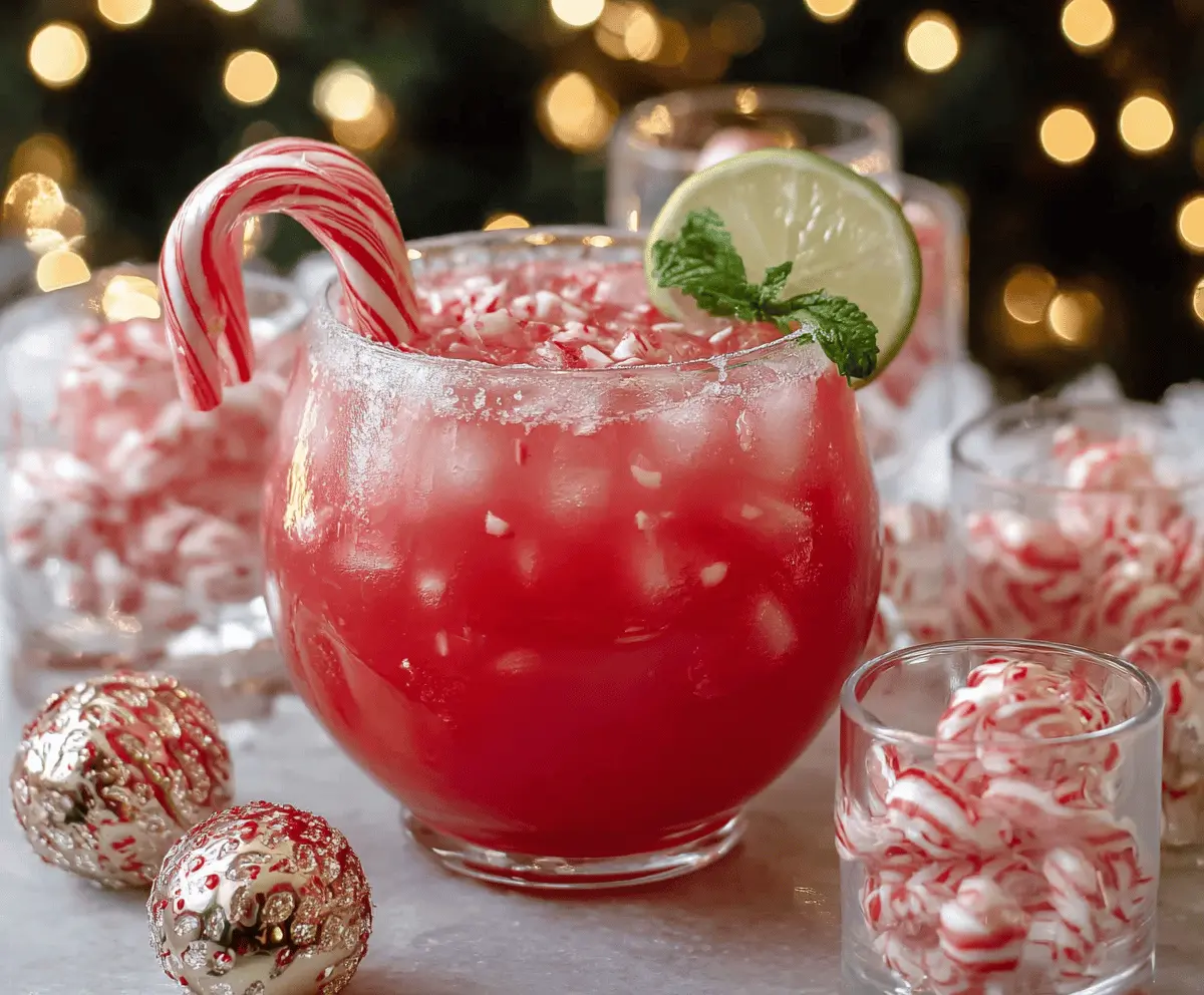 Garnish each glass with a mini candy cane hooked on the rim, a slice of lime, and a sprig of fresh mint for a delightful presentation.