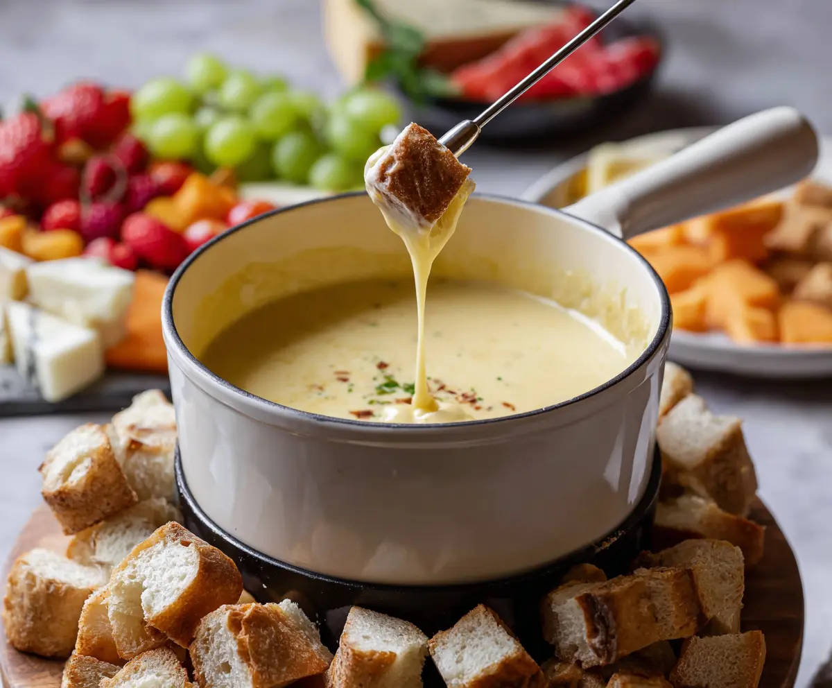 This classic cheese fondue recipe will take about 15-20 minutes to prepare and cook. It’s a quick and delightful dish that’s perfect for sharing with friends and family. Get your dipping goodies ready while the cheese melts—it’s all about good timing!