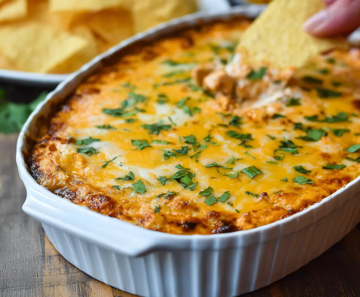 This Chicken Enchilada Dip is creamy, cheesy, and packed with flavor! Made with chicken, cheese, and zesty spices, it’s perfect for dipping your chips!