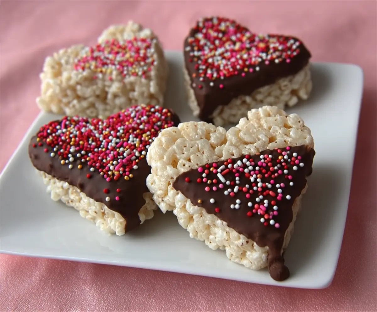 These yummy Chocolate Dipped Heart Rice Krispies are perfect for any sweet occasion! They’re easy to make with just marshmallows, rice cereal, and a drizzle of chocolate.