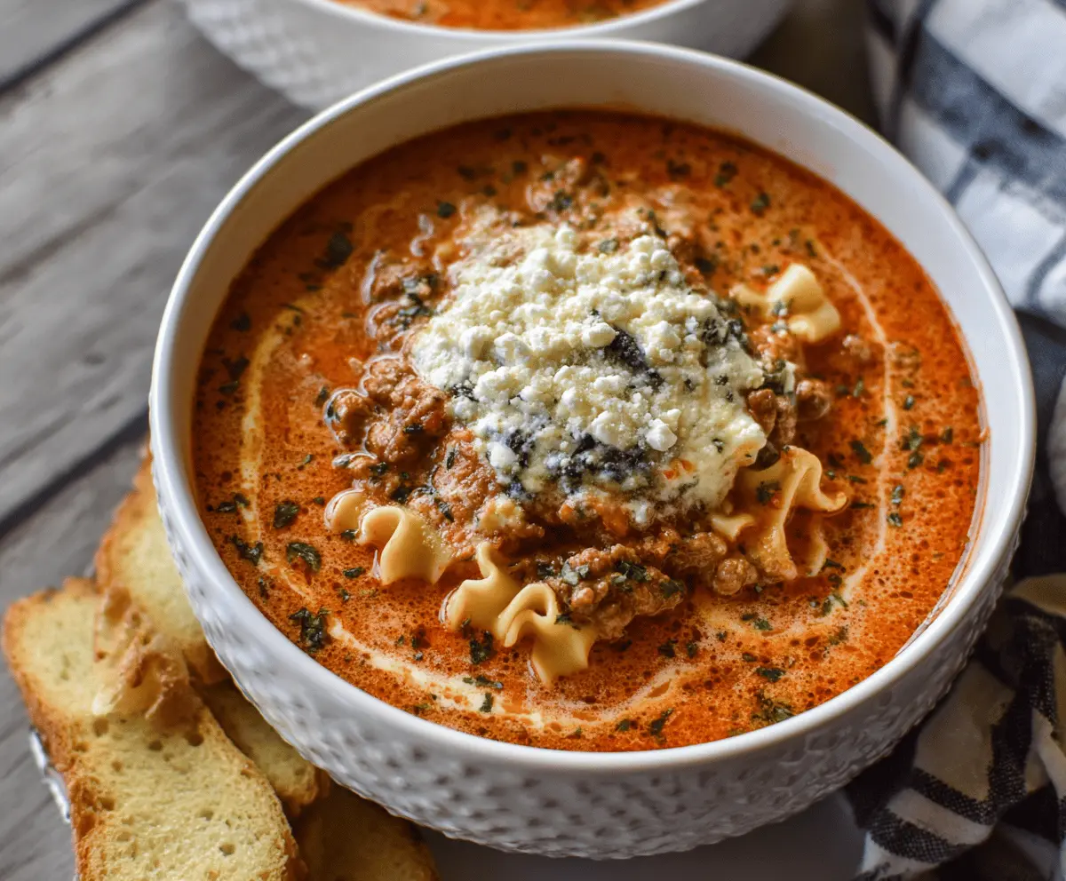 This recipe captures the hearty essence of lasagna with meat, tomato, cheese, and pasta, all simplified into a rich, creamy crockpot soup. Enjoy every comforting bite!