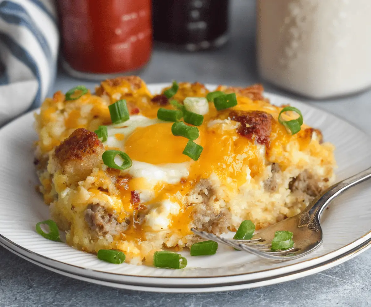 Tater Tots: These are the star of the dish! Their crispy texture pairs perfectly with creamy eggs. If you’re looking for a healthier option, try using diced hash browns or sweet potato tots instead.