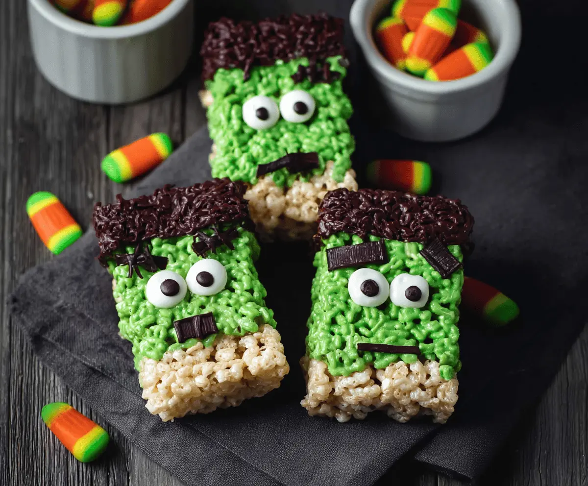 Enjoy these spooky, crispy, and sweet Frankenstein treats perfect for Halloween parties!
