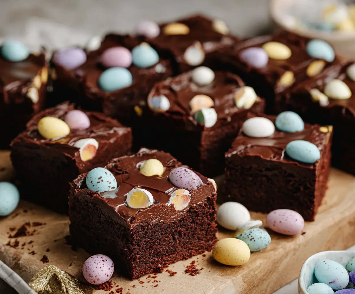 Absolutely! If mini chocolate eggs aren’t available, you can substitute with any chocolate candies like M&Ms or chopped chocolate bars. Just make sure they’re roughly the same size for even distribution in the brownies.