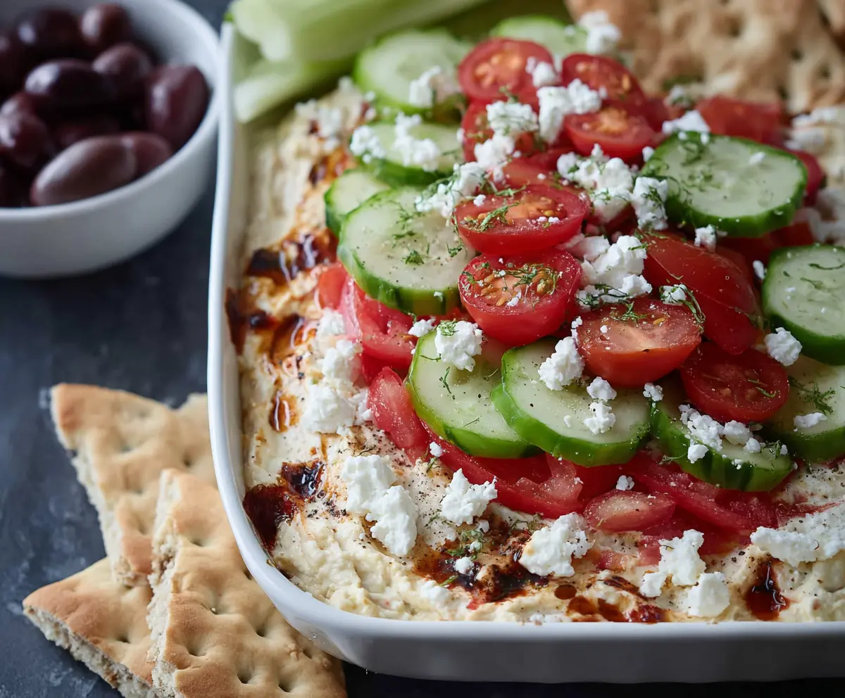 This vibrant Greek Layer Dip is sure to impress at any gathering. Enjoy the fresh, creamy, and tangy flavors that make it a crowd favorite!
