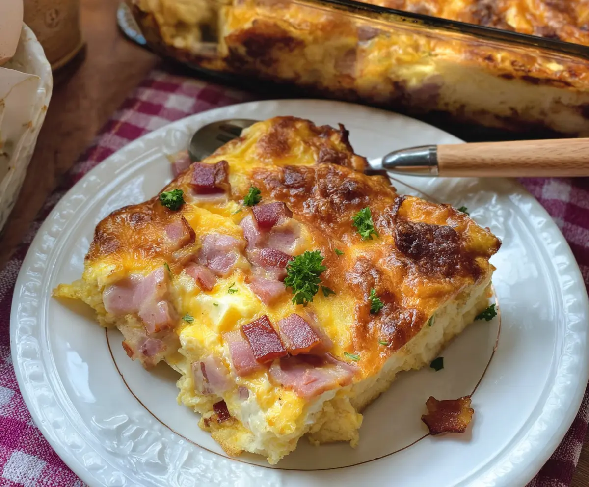 Garnish with fresh parsley if you like, and serve it warm. Enjoy your hearty and delicious Ham Breakfast Casserole!