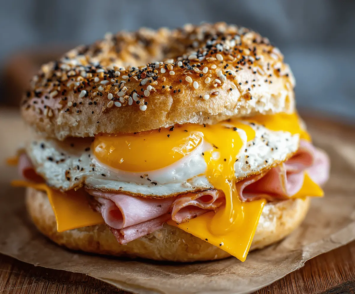 This Ham Egg and Cheese Breakfast Sandwich is a perfect start to your day, combining the richness of the egg, the savory taste of ham, and the gooeyness of melting cheese—all in a delightful, toasted bun!