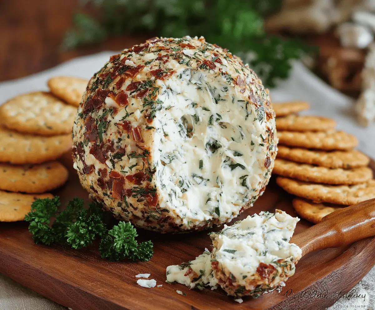 Place the coated cheese ball on a serving platter. Pair it with your favorite crackers or sliced vegetables for dipping. It’s a tasty appetizer that’s sure to impress everyone!