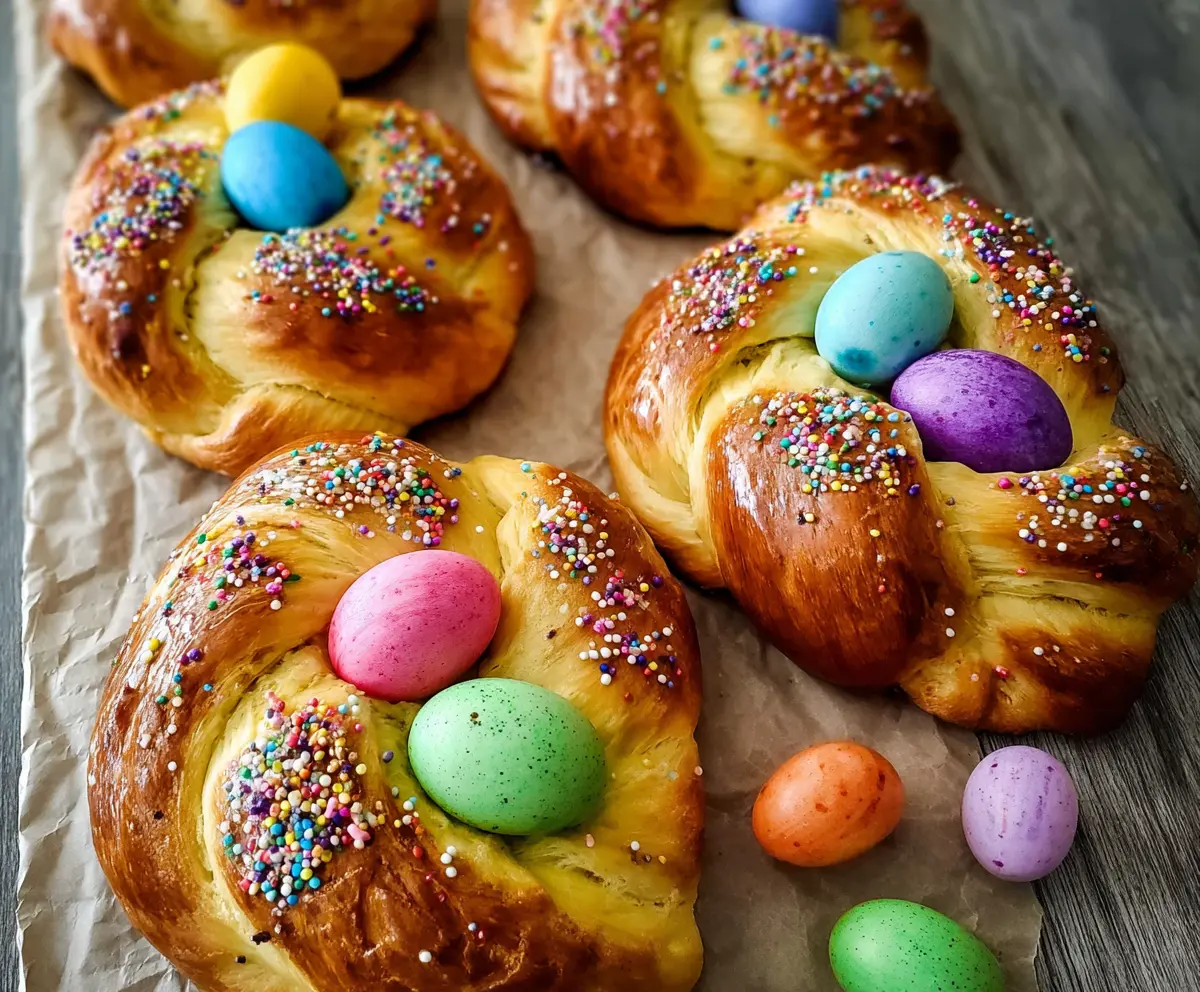 This Italian Easter bread is a sweet, braided treat that looks festive with colorful eggs baked right in! It’s soft and slightly sweet, perfect for celebrating spring.