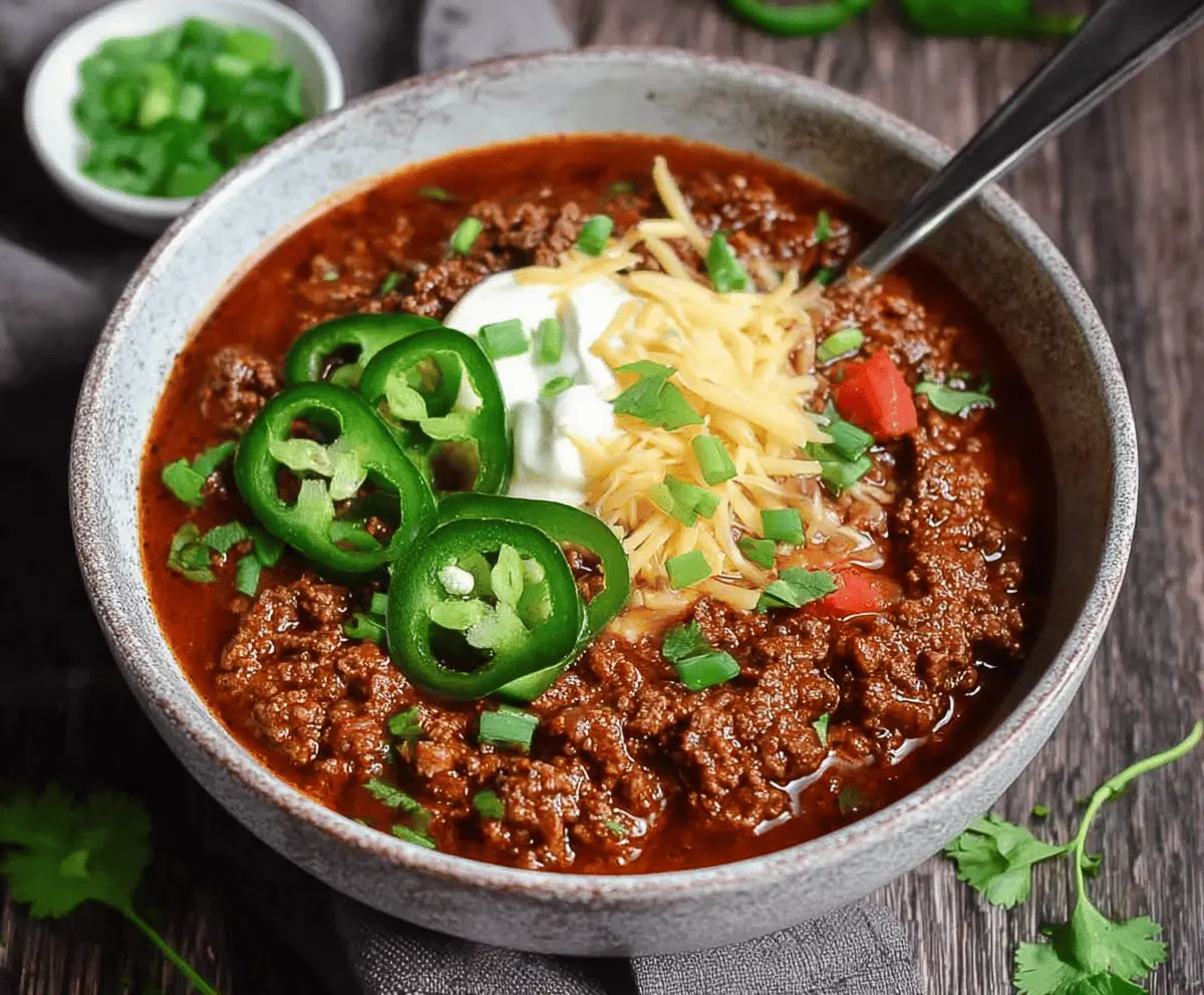 Jalapeños: Fresh jalapeños are great for garnish and heat. If you want a milder chili, skip them. Alternatively, use banana peppers or diced bell peppers for a sweeter touch.