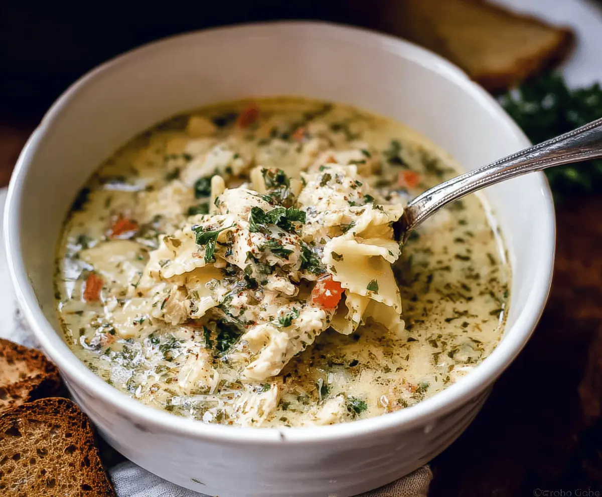 This creamy, herby soup brings all the flavors of white chicken lasagna into a comforting one-pot meal! Enjoy your delicious creation!