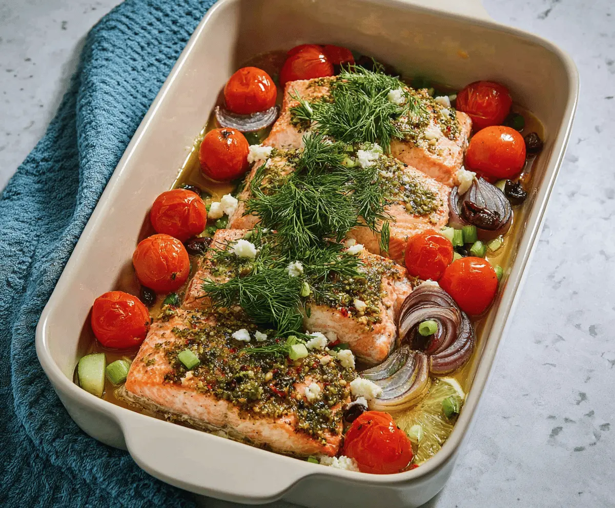 Enjoy a fresh, vibrant Greek-inspired salmon dinner that’s easy and elegant!