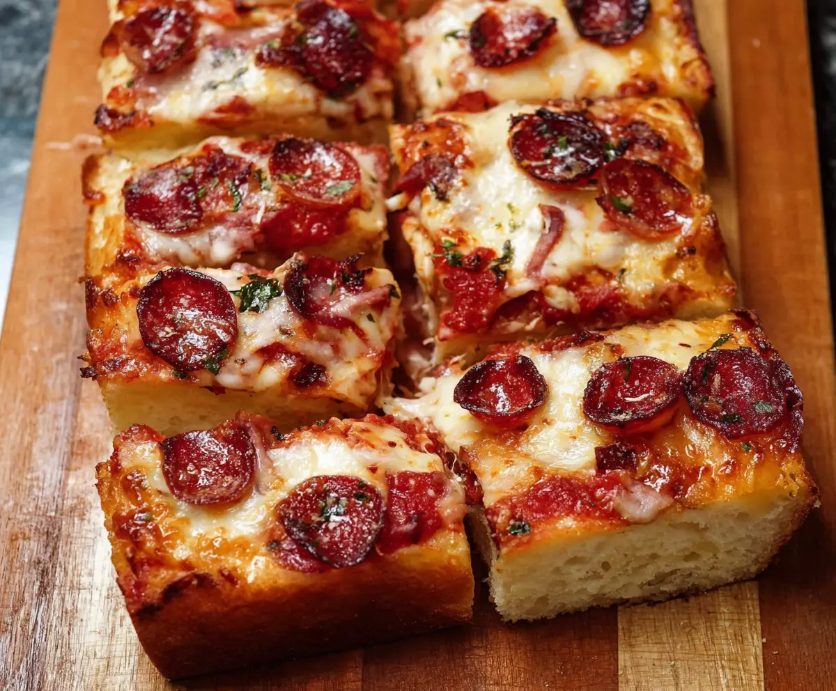 Cut the pizza bread into squares, and enjoy it warm! You can even serve it with extra marinara sauce on the side for dipping. Perfect for parties or a cozy night in!