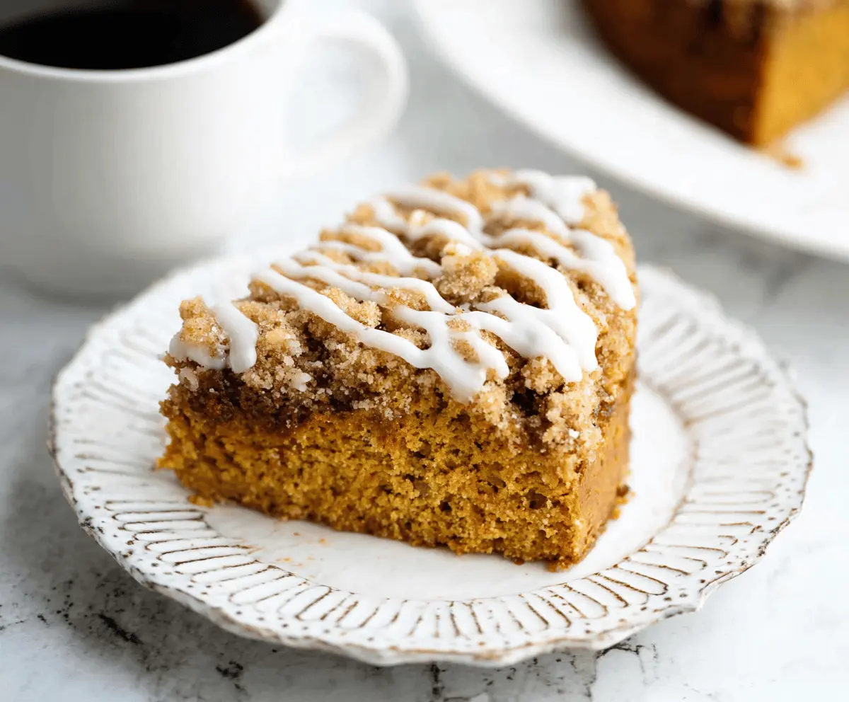 This rich and tender Pumpkin Cinnamon Coffee Cake features a soft pumpkin-flavored base, a crunchy cinnamon-sugar crumb topping, and a sweet vanilla glaze drizzled over it—perfect for autumn mornings or any cozy gathering.
