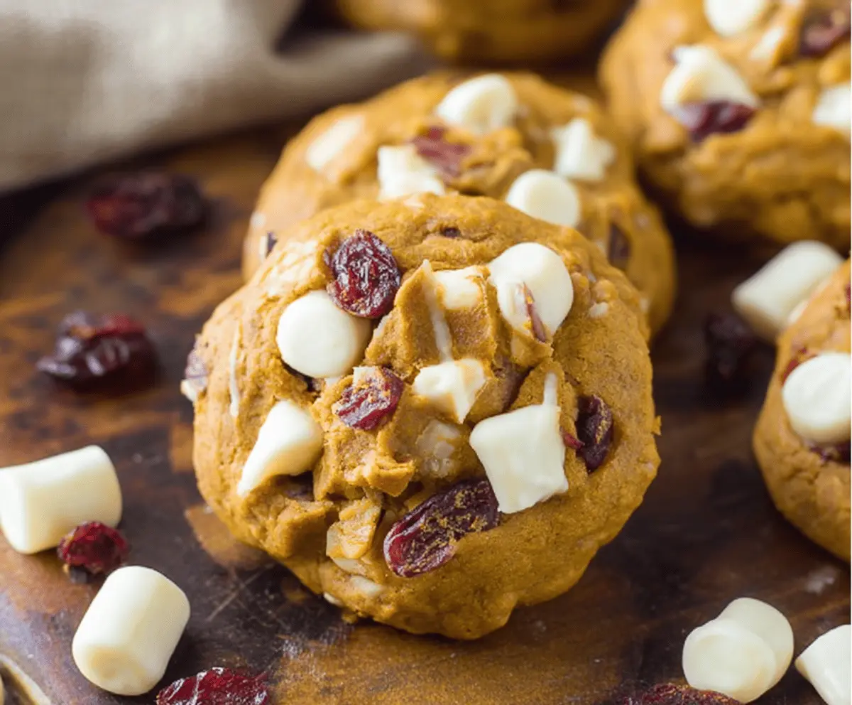 These Pumpkin Cranberry White Chocolate Cookies are a yummy treat! They blend soft pumpkin, sweet white chocolate, and tart cranberries for a fantastic flavor.