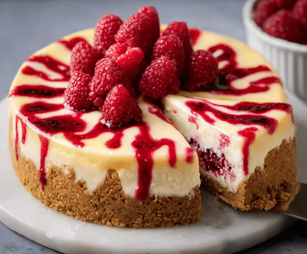 I love how the sweet raspberries balance the richness of the cheesecake. It’s perfect for sharing, but you might just want to keep it all to yourself! 😄