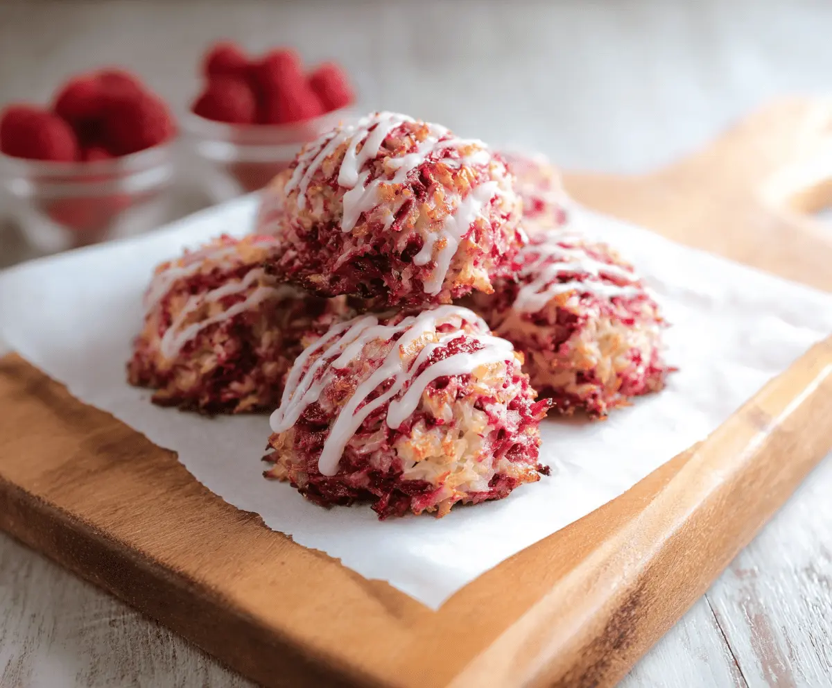 These Raspberry Coconut Macaroons are chewy, sweet treats that combine the lovely taste of coconut with juicy raspberries. They’re quick to make and super fun to eat!