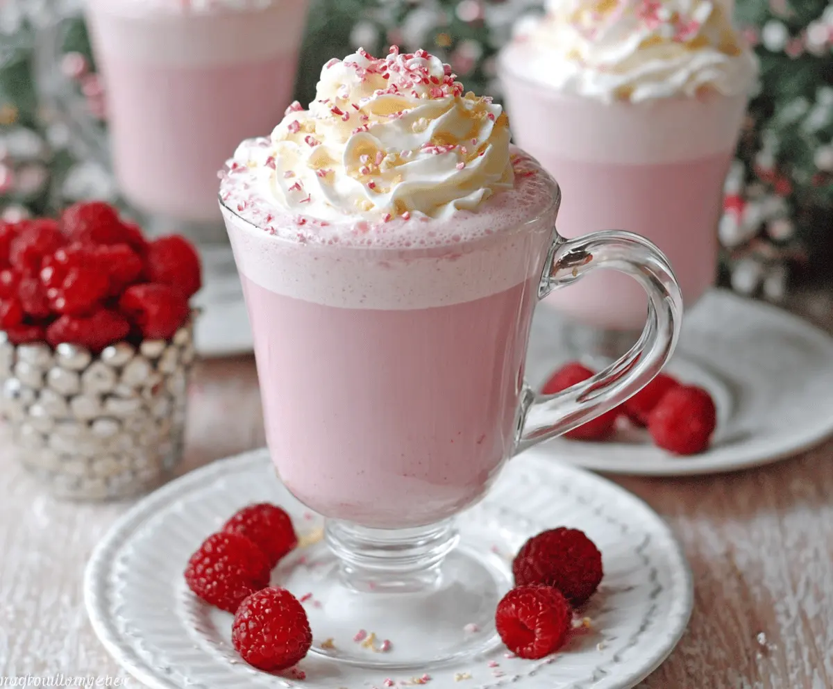 Pour the raspberry white hot chocolate into your favorite mugs. Don’t hold back on the whipped cream—the more, the merrier! You can also sprinkle some crushed freeze-dried raspberries and white chocolate shavings on top for a festive touch.