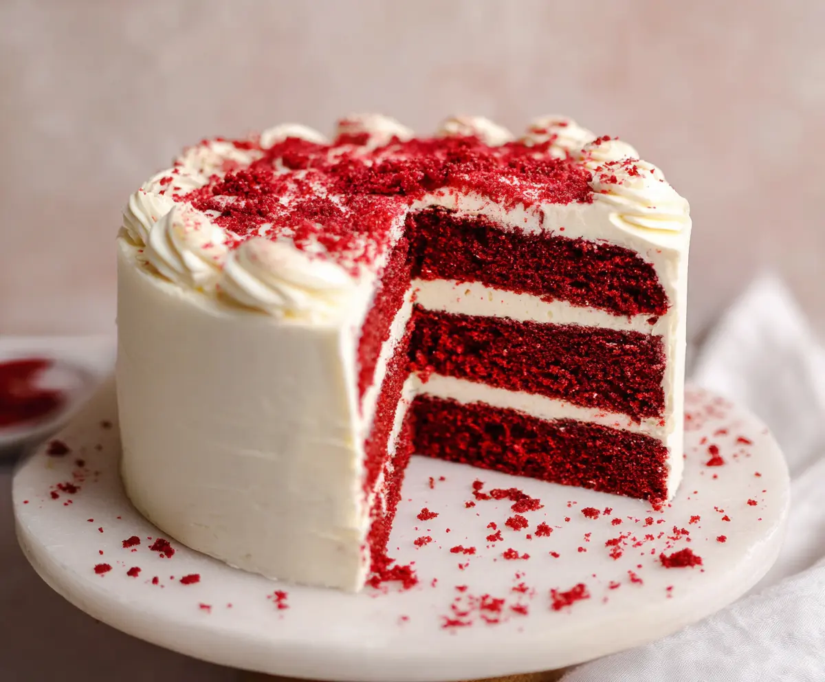 A key to a moist red velvet cake is not overmixing your batter. After adding the dry ingredients, mix just enough for everything to come together. Also, avoid overbaking; check for doneness a few minutes early to keep that cake light and fluffy.
