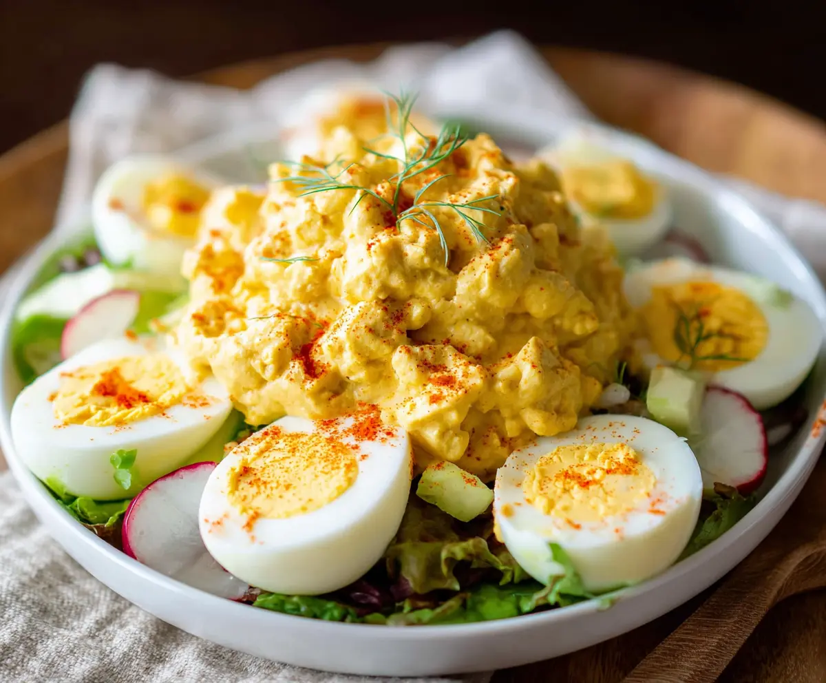 Sprinkle each deviled egg with a little paprika for flavor and color. Add a touch of fresh herbs on top for that extra pop. For a lovely presentation, you can place some extra salad greens or chopped veggies around the eggs. Serve these chilled and enjoy your delightful Salad Deviled Eggs!