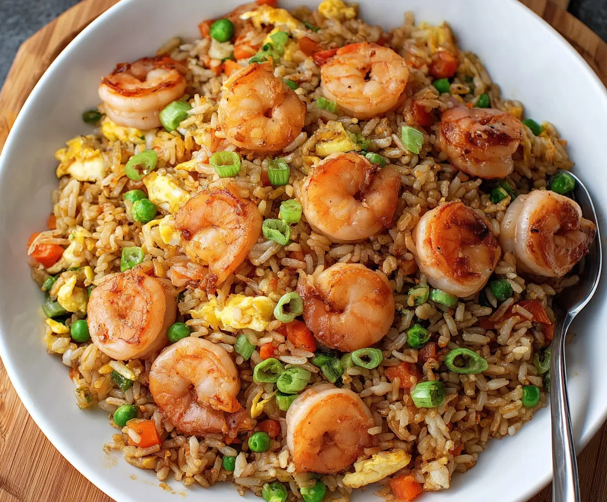 This Shrimp Fried Rice is a hearty meal packed with flavor! With juicy shrimp, colorful veggies, and fluffy rice, it’s a satisfying dish that’s super quick to whip up!