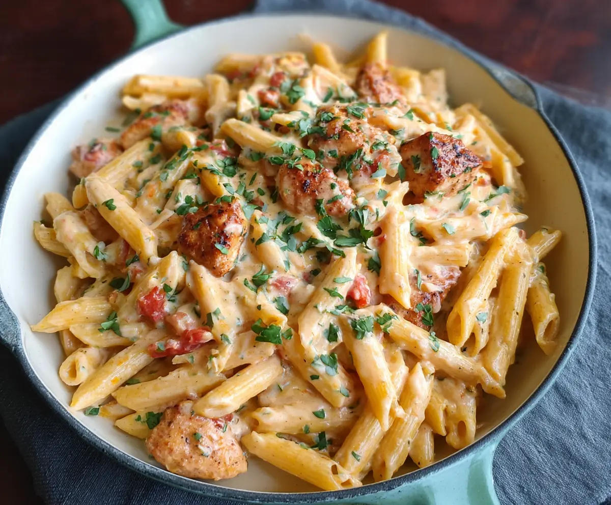 This Southwest Alfredo Penne Pasta combines creamy Alfredo sauce with a spicy twist. It’s packed with cheesy goodness and has a hint of heat that makes it exciting!