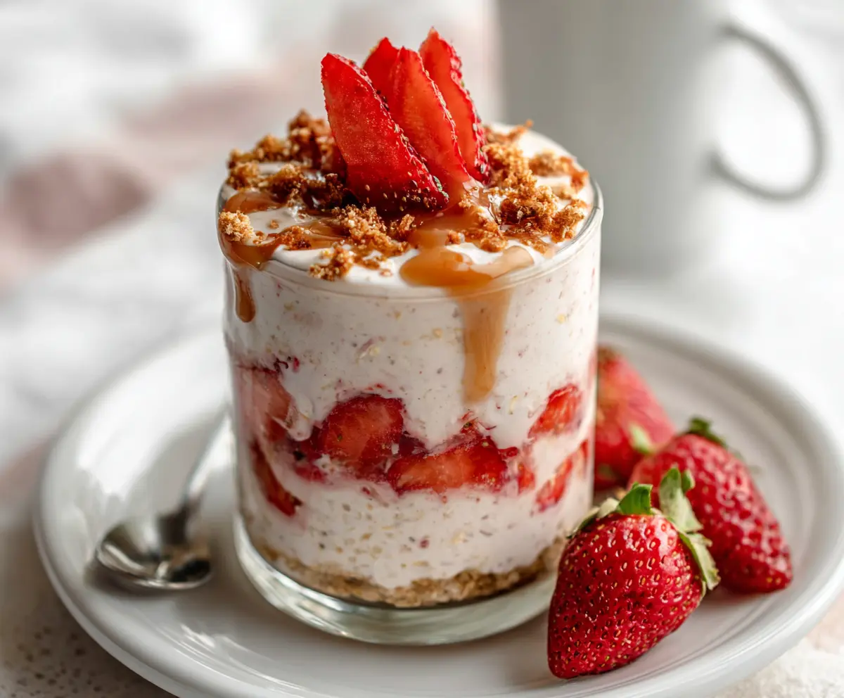 These Strawberry Cheesecake Overnight Oats are a yummy way to start your day! With creamy yogurt, fresh strawberries, and a touch of graham cracker crunch, they taste just like dessert for breakfast.