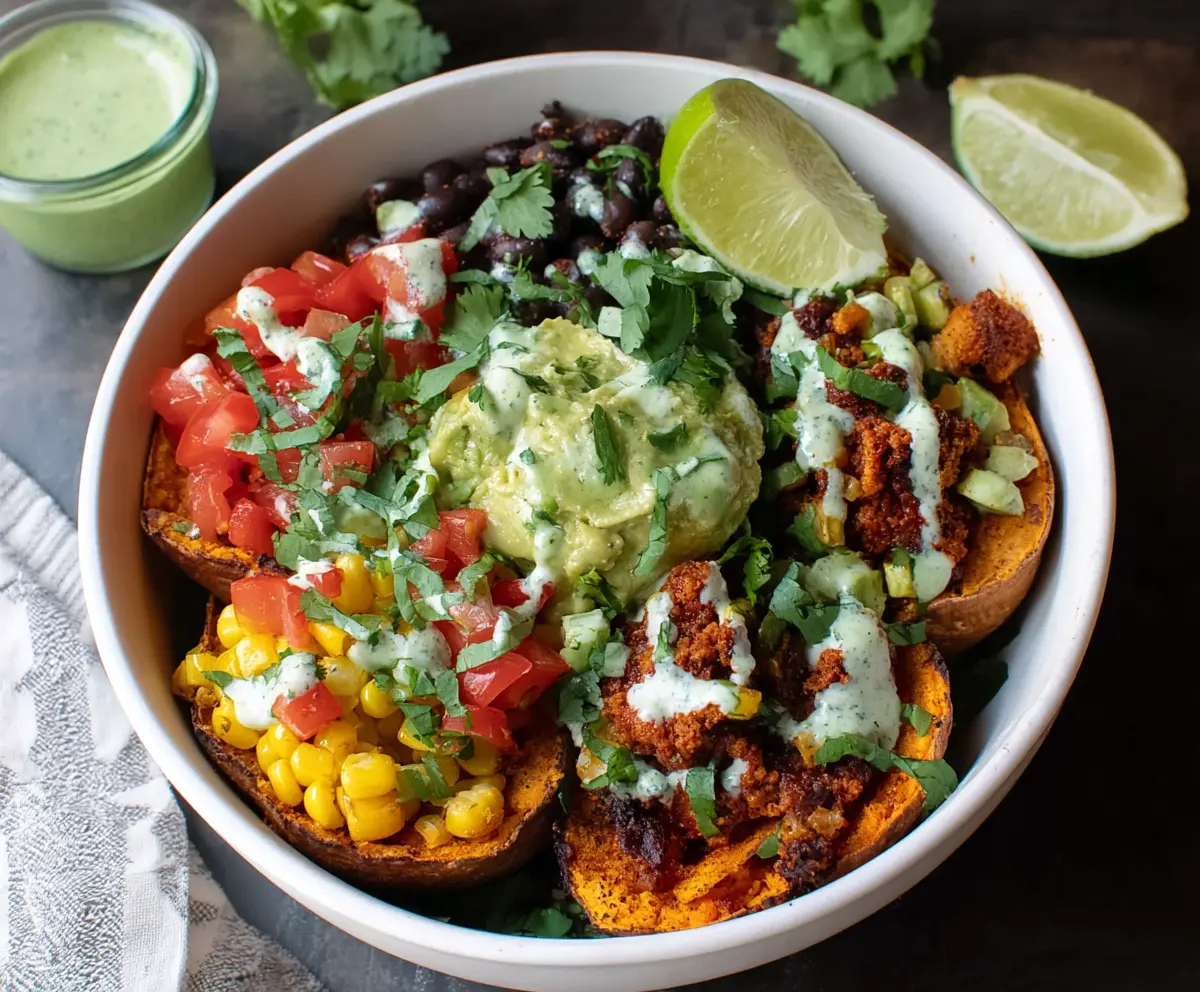 Drizzle the cilantro lime dressing over the assembled bowls and garnish each with a lime wedge. Your Sweet Potato Taco Bowls are ready to enjoy!