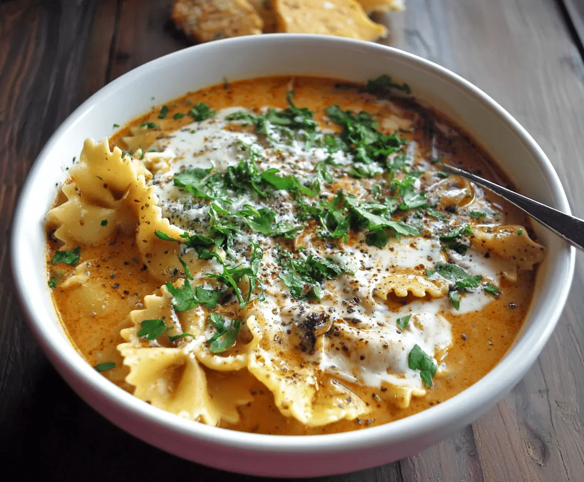 This Vegetarian Creamy Lasagna Soup is a warm hug in a bowl! With layers of pasta, rich tomato sauce, and creamy cheese, it brings all the flavors of lasagna in a cozy soup form!